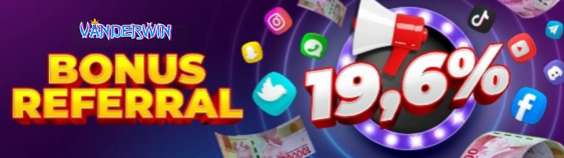 VANDERWIN memberikan layanan sistem REFERRAL bagi anda yang ingin mendapatkan tambahan uang setiap minggunya. Kami memberikan BONUS REFERRAL kepada setiap member yang berhasil anda daftarkan.